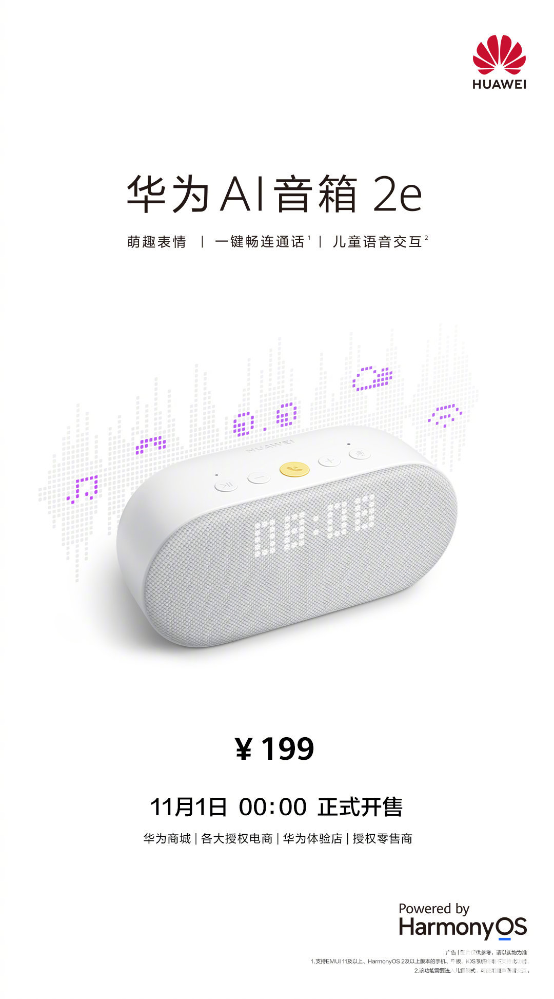 精准适配办公取轻度逛戏用户。操做愈加简单,零售价199元,华为终端微博颁布发表具有萌趣脸色、支撑一键畅连通话、支撑儿童语音交互的华为AI音箱2e正在今天0点正式开售了。w_720/quality,